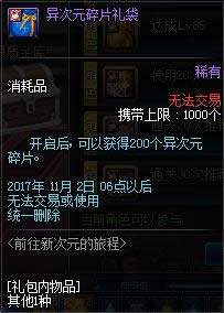 为各位带来dnf前往新次元的旅程活动地址,参与到这次dnf前往新次元的旅程活动的玩家朋友们将可以获得装备材料和道具礼盒,下面我们就来看一看dnf前往新次元的旅程活动奖励介绍吧。