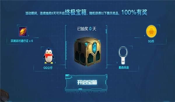 4. 活动期间,每天在线30分钟以上可以开启一次宝箱,可随机获得以下展示礼品,连续抽奖6天可以开启终极宝箱