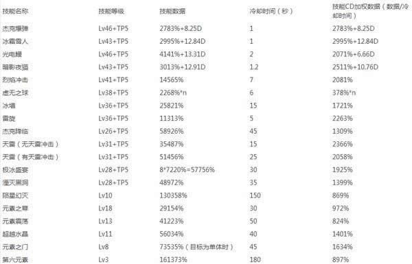 在4个上位技能中,四个技能输出大概都是40000-60000之间,新晋的输出技能天雷不仅输出合格,而且冷却也比较理想,唯一缺点就是要站桩了吧。晋升为45技能的杰克降临输出是四个上位技能中最高的,冷却也是最久,不过根据我们优先考虑输出面板的宗旨,杰克降临还是要点满。(奥义对杰克降临和黑洞的BUFF率为32%高于天雷以及极冰盛宴。杰克降临和黑洞的优先等级提高,不过对整体加点抉择影响不是很大,在输出差不多的情况下,我们优先考虑技能形态。)