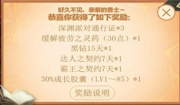 【1】100%获得黑钻15天、番薯*2、可以交易的疲劳药30*1、契约7天