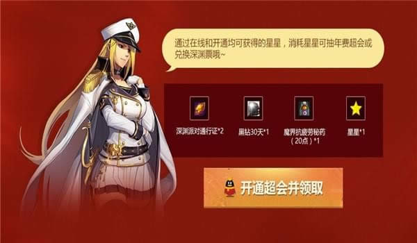 2.开通会员即可获得奖励,领取黑钻和深渊票奖励。