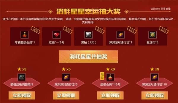 4.星星抽奖福利,可以获取红钻和黑钻,以及年费超级会员、