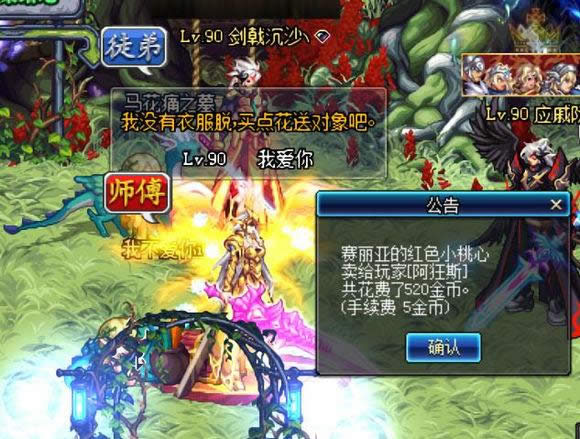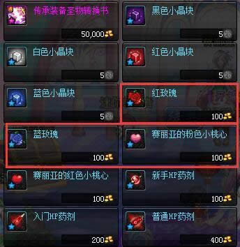 进货渠道也很简单,赛丽亚商店里红玫瑰、蓝玫瑰、小桃心都是100金币;