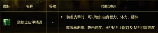 -装备皮甲时增加智力,精神,魔法暴击率,攻击速度,HPMAX,MPMAX,MP回复速度