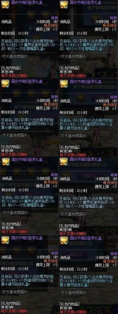 活动期间,每日登录游戏即可领取一个礼盒,礼盒请当天使用,每日凌晨6点会删除前一天领取的礼盒