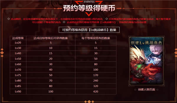 1.活动期间,在没有创建等级预约人物情况下,在创建角色时可用选择创建Lv预约角色 只有等级预约新创建的角色才能参与活动,每个账号最多可以创建1个等级预约角色
