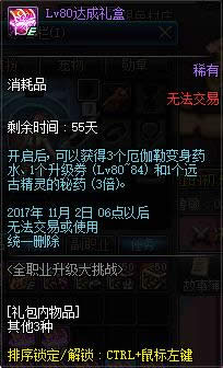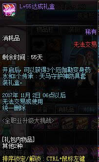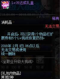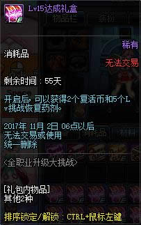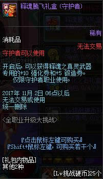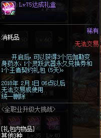 5.挑战恢复药剂: 使用后, 恢复25%的HP和MP。在全职业升级大挑战活动中创建的守护者等级预约角色可以享受如下buff:力量、智力、体力、精神