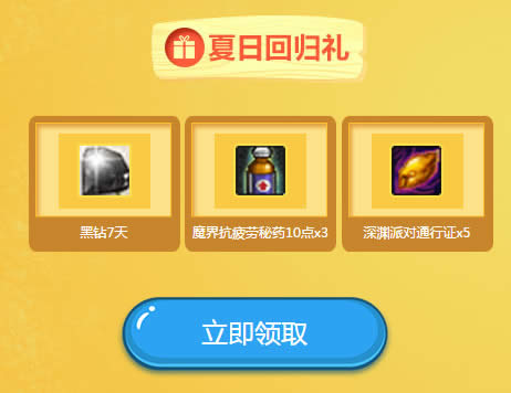 【1】2017年7月15日起至8月15日未登录过DNF且账号中拥有一个40级角色的玩家,即可领取“夏日回归”礼包一个,单个QQ限领一次