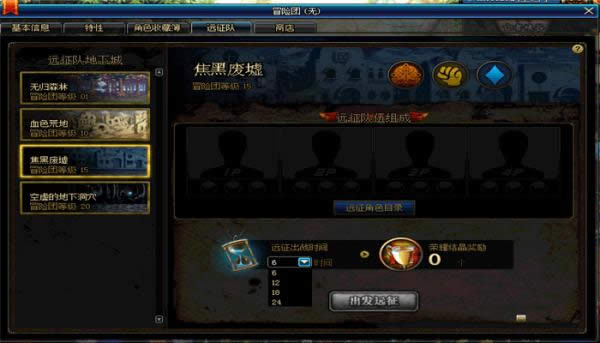 远征队组成方法为只能建立跟副本相同属性的团队。