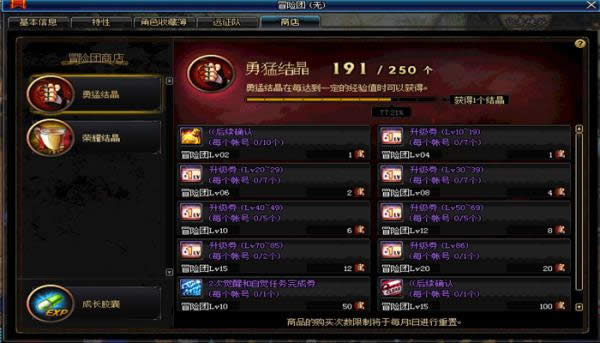 冒险团新增可以用勇猛/荣誉结晶兑换的商店