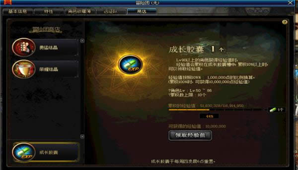鼠标移动至冒险团可查看累计经验值