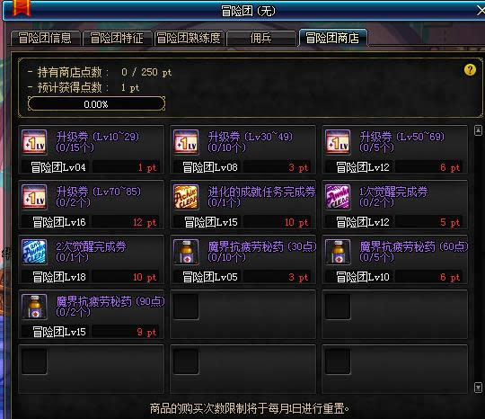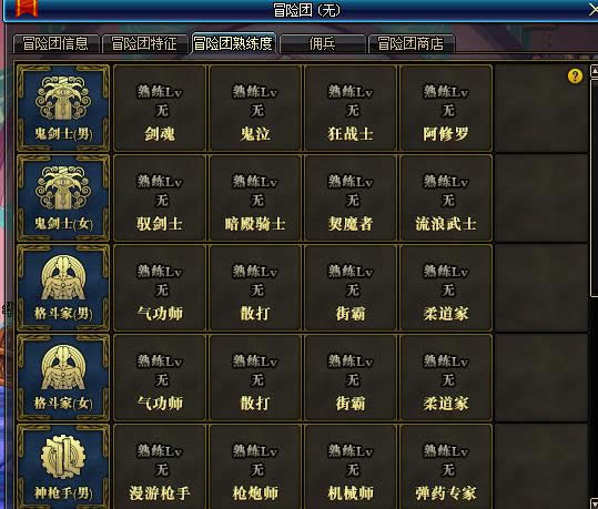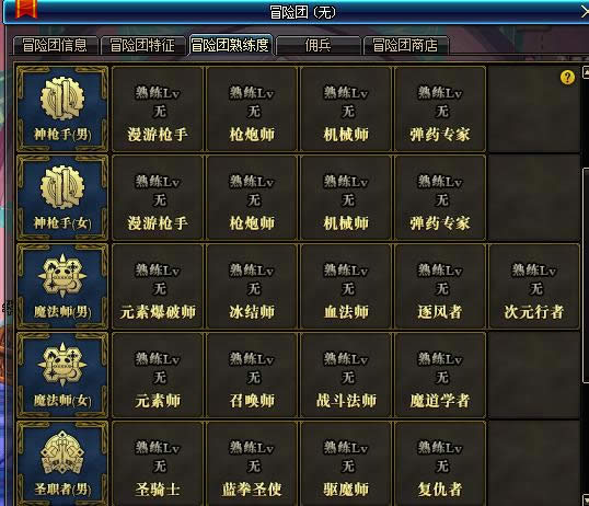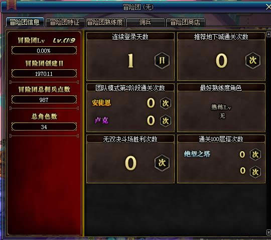 4.冒险团情报:可以查看冒险团等级和自身账号的所有角色数,佣兵积分