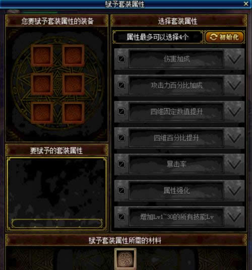 套装的赋予属性不是完全自选的,按照不同部位可选的属性是不同的