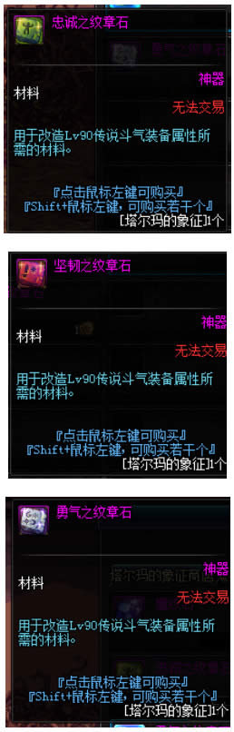 其中塔尔玛的象征可以在小正太休亚的商店中兑换传说装备的升级、赋予、改造材料,奖励地下城掉落的传说自带随机属性类似解封的假紫,但是属性是可以通过升级、赋予、改造来调整为适合自己的装备的~
