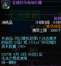 开启后,可以随机获得1个远古精灵的秘药(2倍)或1个Lv1—86可用的成长胶囊(3%)。