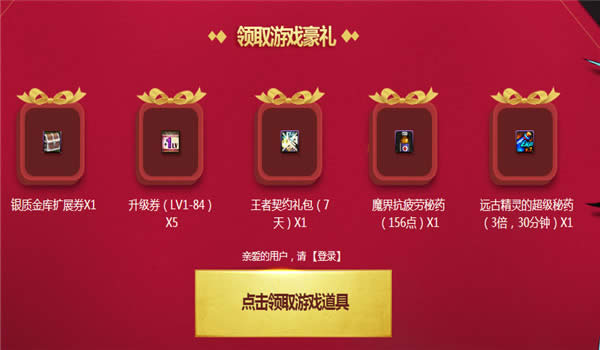 2.每个游戏帐号限制领取一次!道具均无法交易,请慎重选择!