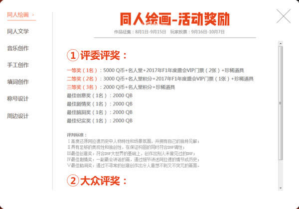 评奖标准:具一定知名度的文学大神及多次参与DNF文学共创活动并获得奖项的作者;