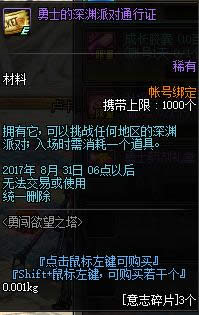 3个勇士的深渊派对通行证拥有它, 可以挑战任何地区的深渊派对; 入场