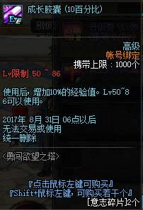 2个成长胶囊 (10百分比)使用后, 增加10%的经验值。 Lv50~86可