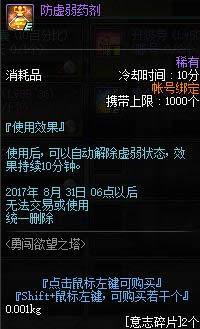 2个防虚弱药剂使用后, 可以自动解除虚弱状态, 效果