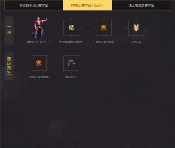 2. 武器使用规则:统一使用PK服邮件所发放的斗兽场印章兑换的武器;