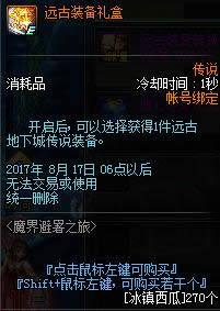 开启后可以获得1件远古地下城传说装备。