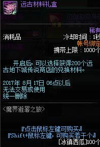 开启后,可以选择获得200个远古地下城传说商店的兑换材料