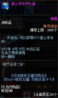 活动介绍: 使用【冰镇西瓜】在NPC来避暑的贝拉迪尔商店中兑换奖励