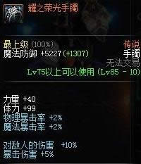理由:耀之荣光套装的力量和智力加成比较高,套装de属性也是增加的百分比的力量和智力,对女圣骑士来说,提升都是相当不错的。