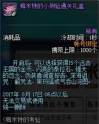 为各位带来dnf梅米特的考验活动地址,参与到这次梅米特的考验活动的玩家朋友们可以获得各种奖励道具,下面我们就来看一看dnf梅米特的考验活动奖励介绍吧,希望对各位有所参考。