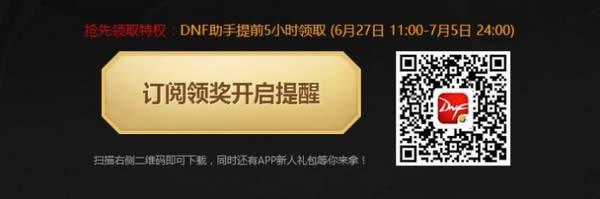 1、奖励发放和抽奖将于6月27日下午16:00-7月5日下午24:00期间进行;官方APP:DNF助手提前5个小时领取;