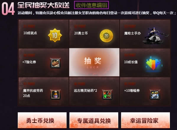5.注册过女圣职的用户,每日登录一次游戏即可进行抽奖,单Q每日一次,抽奖前请重新登录一次游戏