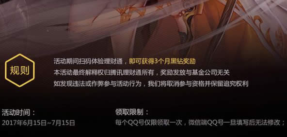 1.参与活动可以获得三个月黑钻奖励。