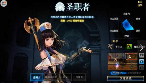 女圣职者一转后是圣骑士,一觉后是圣印,二觉后是炽天使。武器精通是十字架,防具精通是板甲。这个职业就是奶爸转化而来的奶妈。