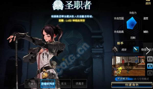 女圣职者一转后是异端审判者,一觉后是残虐者,二觉后是炼狱化身。武器精通是斧头,防具精通是皮甲。这个职业就是替代了女篮拳的新职业,小编感觉她就是驱魔中的力驱。