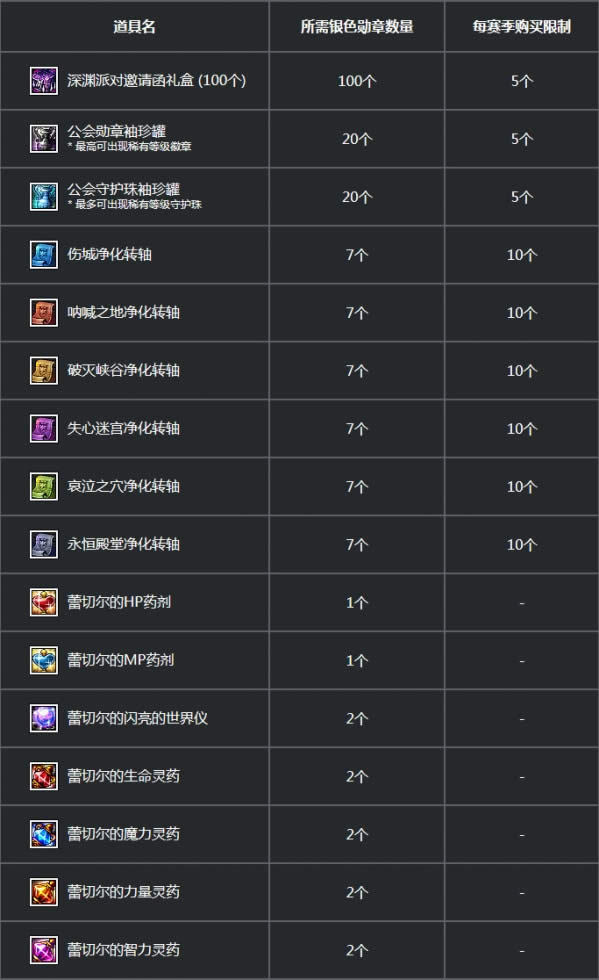 - 商店贩卖的物品的购买次数限制在每个赛季开放时初始化