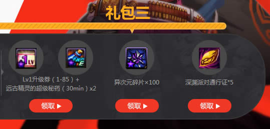 Lv1升级券(1-85)+ 远古精灵的超级秘药(30min)x2领取