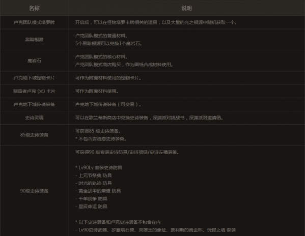 ※ 卢克团队模式相关的史诗装备,不可用于跨界系统。
