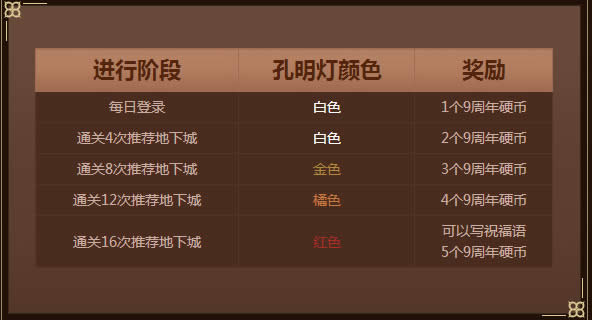5.通关16次推荐地下城红色可以写祝福语5个9周年硬币