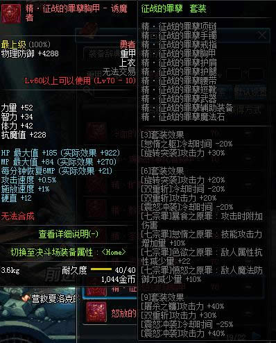 dnf诱魔人异界套装属性大全: