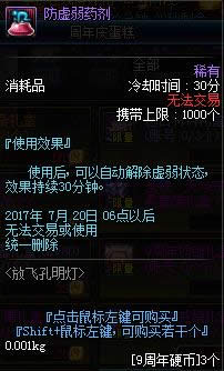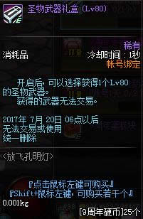 1.以上道具均为账号绑定,除了道具礼盒开启获得的装备材料等无删除日期外,其余道具将于2017年7月20日更新维护后删除,请及时使用