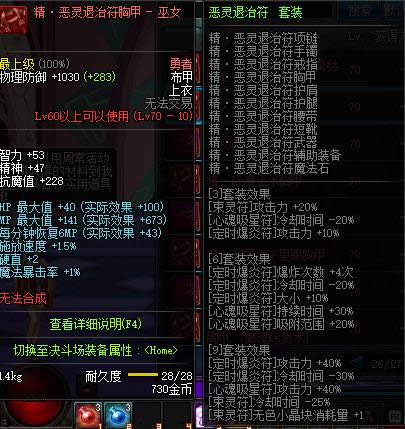 这一套就是大家津津乐道的喷子套了,加成4个技能,分别是:魔魂除灵术、神谕的祈愿、心魂吸星符、定时爆炎符