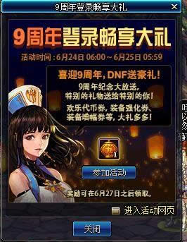 DNF9周年活动什么时候开始