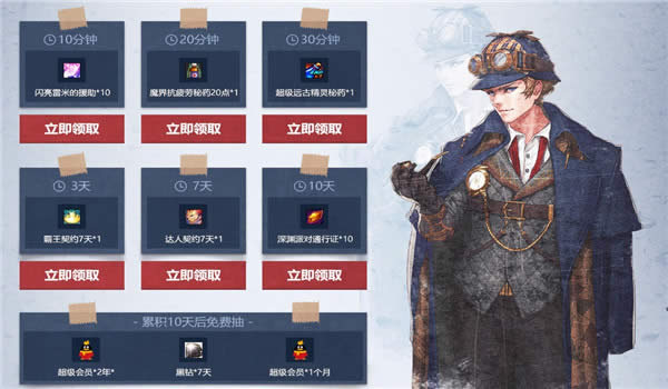 2.每日累积在线可以获得各种疲劳药水和深渊通行证。