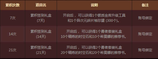 2.星期日可以累积签到2次累积签到达到7次、14次和21次还可获得累积签到奖励