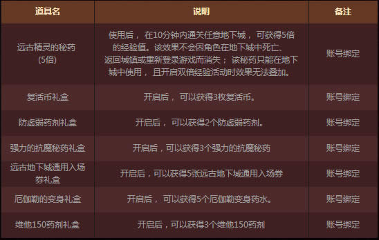 3.以上奖励均为账号绑定,且于2017年6月22日6:00更新维护后删除,请及时使用日签到活动以账号纬度进行亡者峡谷、周常地下城、黄龙/青龙/黑龙大会无法累计通关次数奖励以邮件形式提供,有效期15天