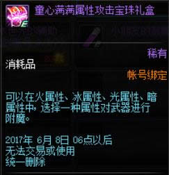dnf永恒不变的童心活动宝珠属性一览: