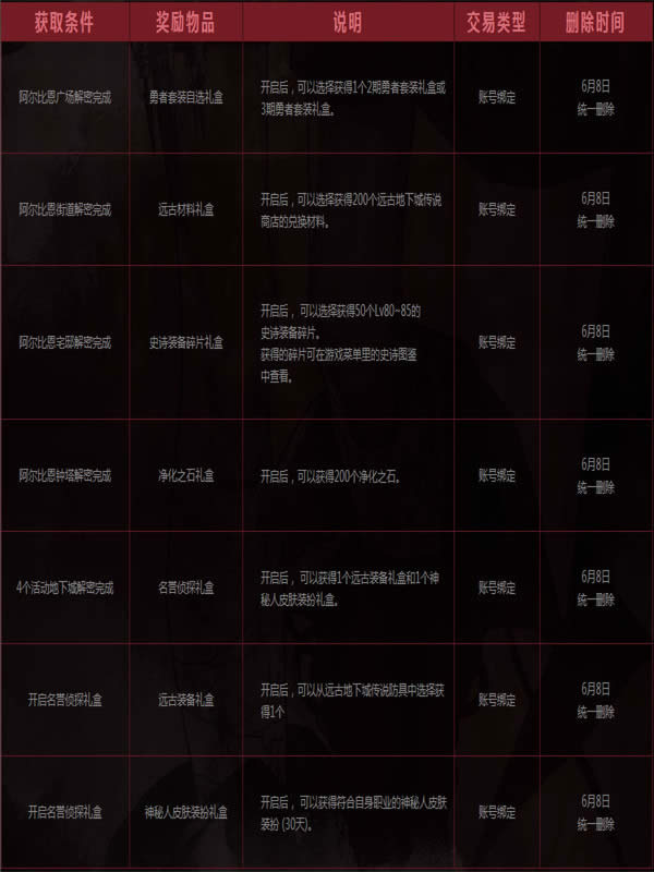 1.每解开一个活动地下城的全部谜题,都可以获得对应的解密奖励,每种奖励每个帐号只能获得1次