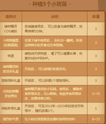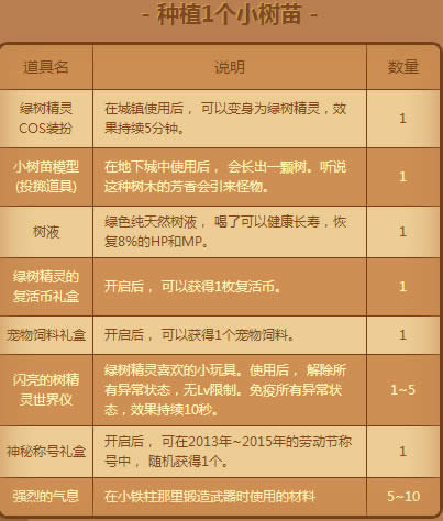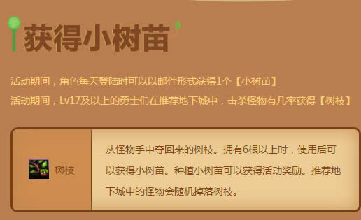 1.活动期间,角色每天登陆时可以以邮件形式获得1个【小树苗】