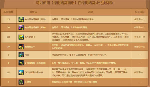 可以使用【绿树精灵硬币】在绿树精灵处兑换奖励 -